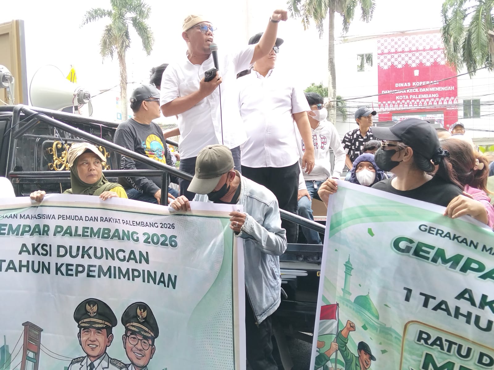 Di bawah komando tokoh aktivis seperti Rudi Pangaribuan, Kyai Umar, dan Dekky Lubay, Capunk, Fahmi Jacklin Yudha Martin, Pasaribu, Rahmad Sandy. massa yang terdiri dari mahasiswa, organisasi Pemuda Batak Bersatu (PBB), PP Wong Kito, hingga warga rumah susun,serta perwakilan masyarakat Palembang lain nya menyuarakan dukungan atas rapor hijau kinerja Pemerintah Kota Palembang.